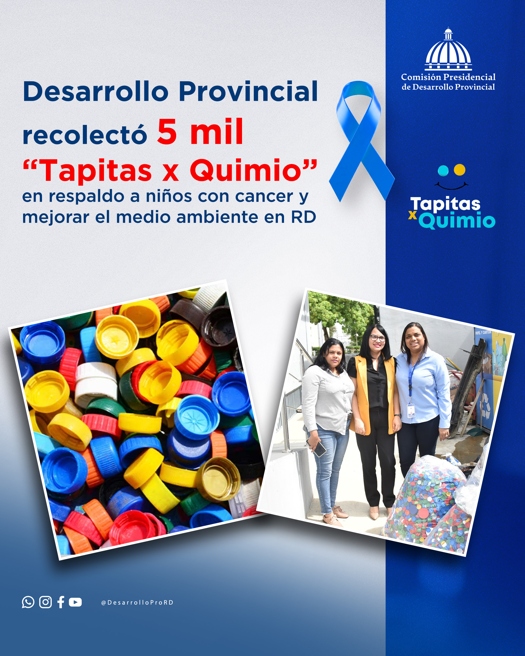 La Comisión Presidencial de Apoyo al Desarrollo Provincial (CPADP) se unió a la cuarta edición de la campaña “Tapitas x Quimio”, una iniciativa solidaria que busca recaudar fondos mediante el reciclaje de tapas plásticas para apoyar el tratamiento de niños y niñas con cáncer en el país.